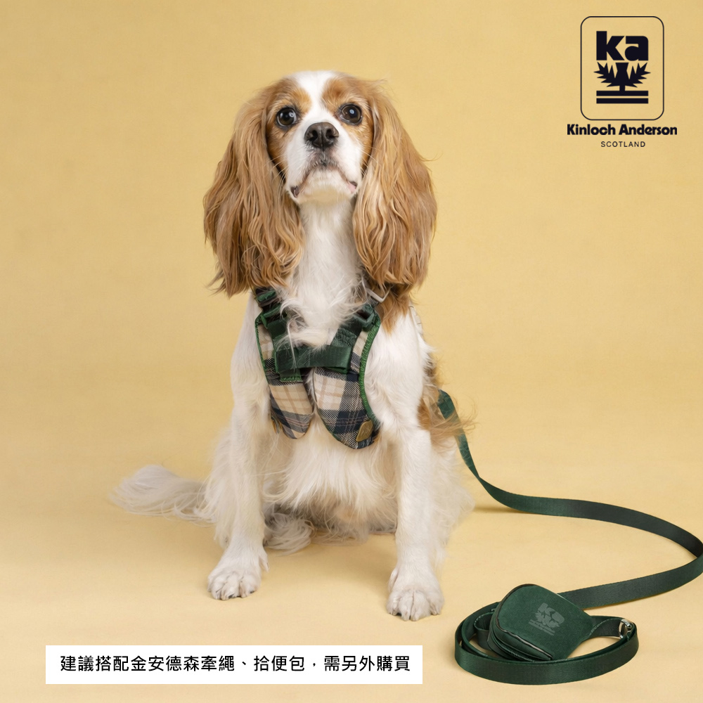 fun舞顏溜色!輕奢皮革會呼吸的寵物減壓格紋胸背帶-橄欖綠
