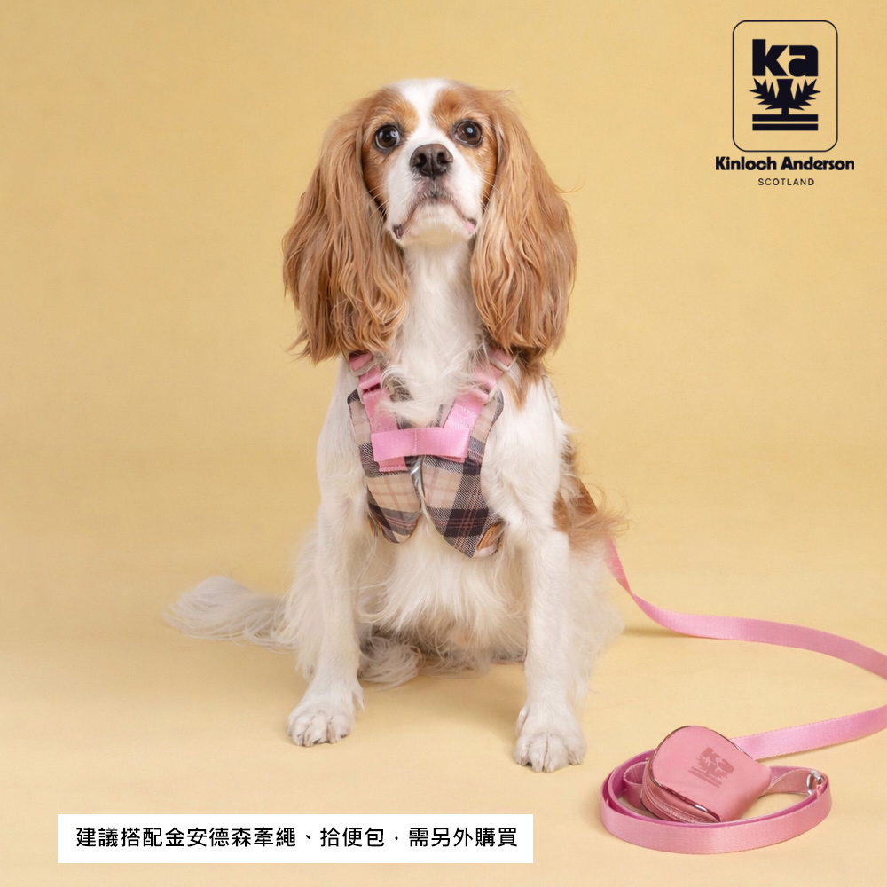 fun舞顏溜色!輕奢皮革會呼吸的寵物減壓格紋胸背帶-櫻花粉