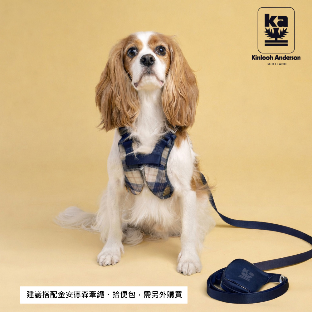 fun舞顏溜色!輕奢皮革會呼吸的寵物減壓格紋胸背帶-海軍藍