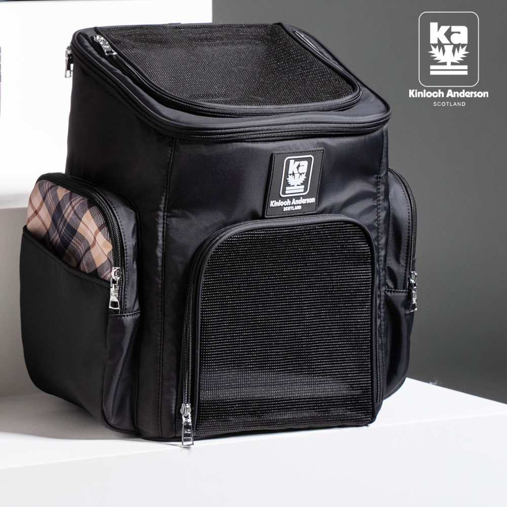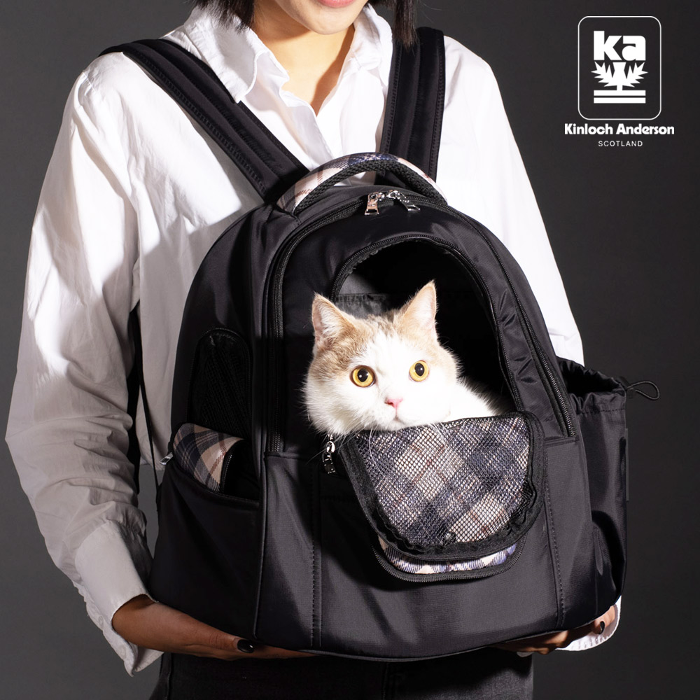 city漫遊!簡約都會輕量防潑水尼龍插袋格紋寵物後背外出包-時尚黑