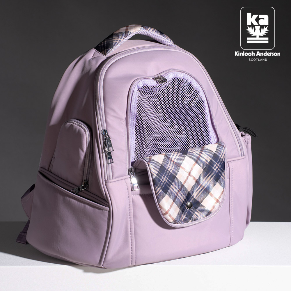city漫遊!簡約都會輕量防潑水尼龍插袋格紋寵物後背外出包-丁香紫