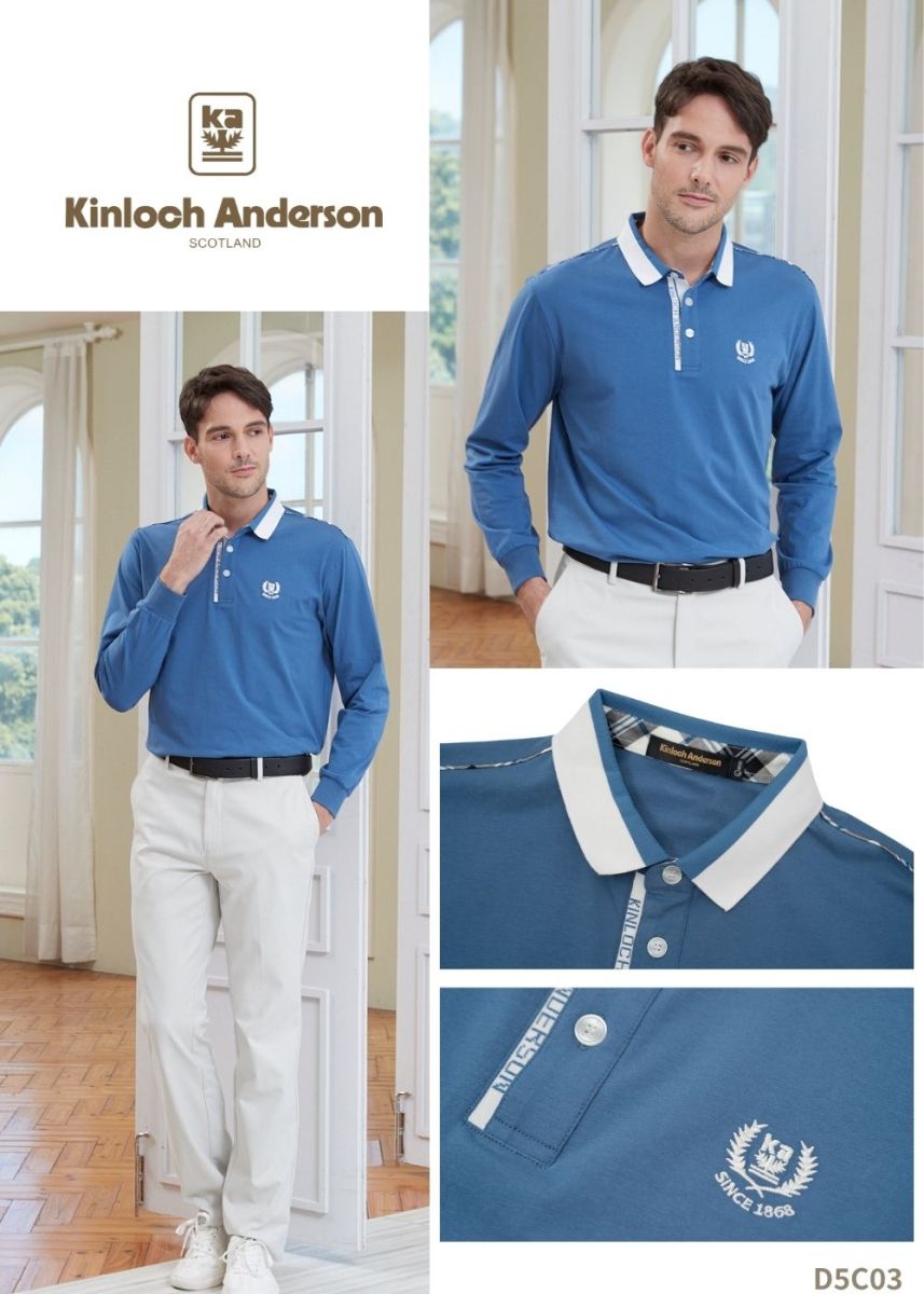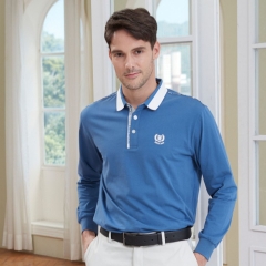 羅紋領POLO衫 格紋肩線 POLO衫 (藍色)