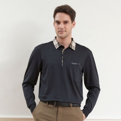 POLO衫 經典格紋領 門襟 實用口袋 (黑色)