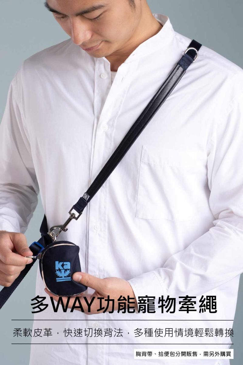 fun舞顏溜色!輕奢皮革多WAY功能寵物牽繩-海軍藍
