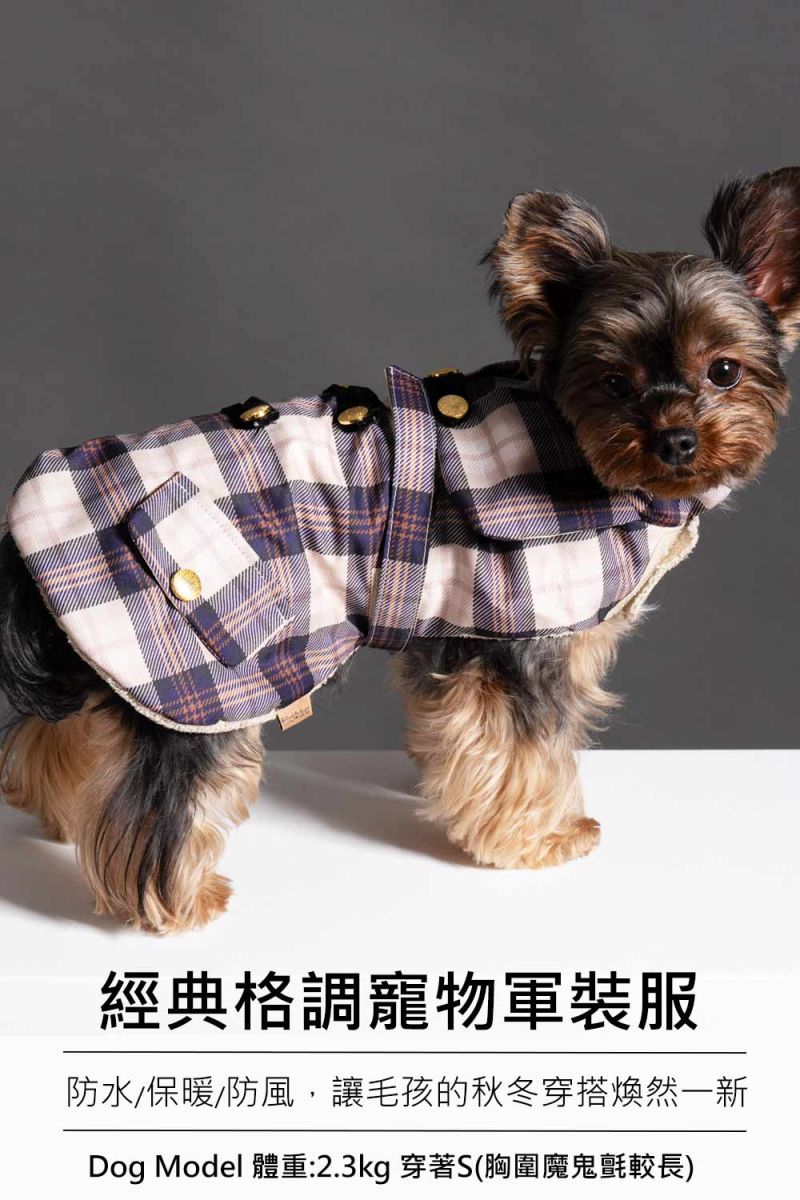 city漫遊!防水保暖內磨毛經典格調寵物軍裝服-卡其格