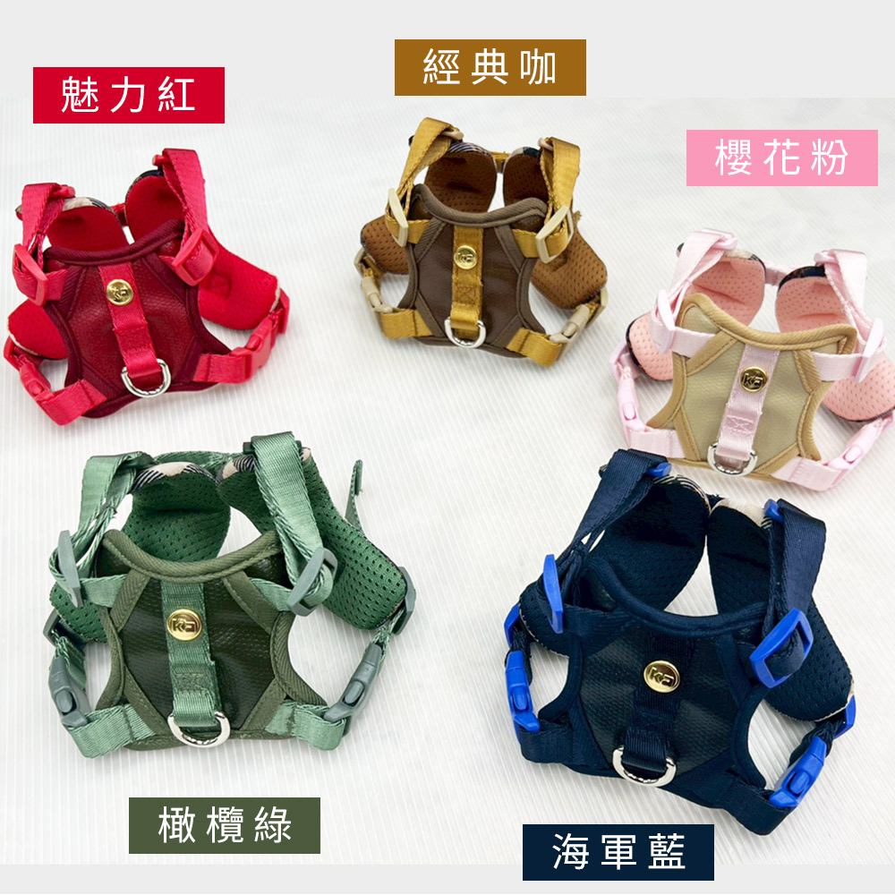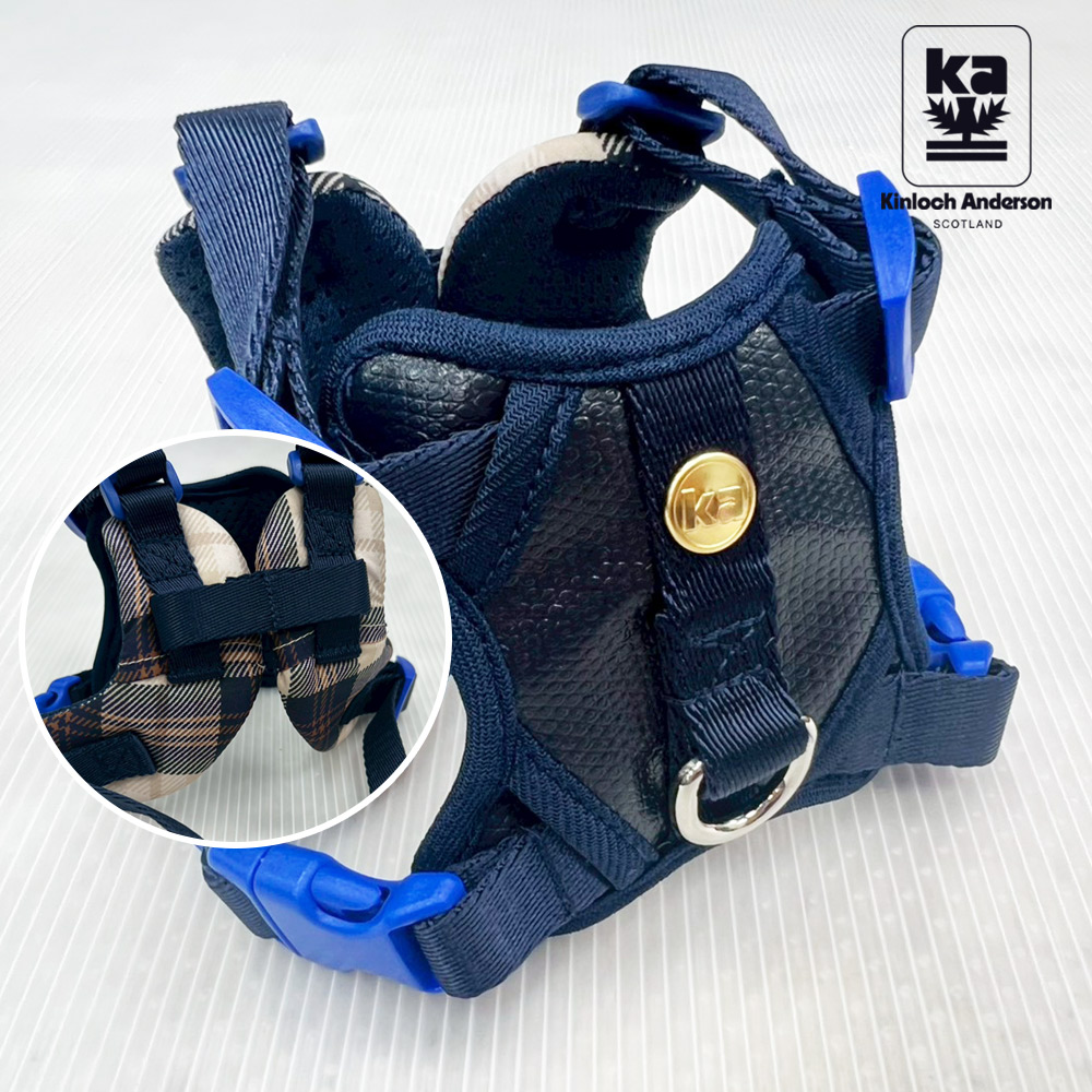 fun舞顏溜色!輕奢皮革會呼吸的寵物減壓格紋胸背帶-海軍藍