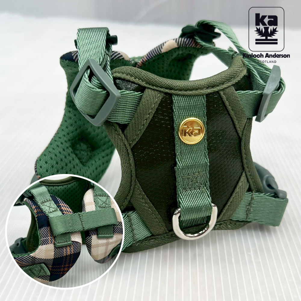 fun舞顏溜色!輕奢皮革會呼吸的寵物減壓格紋胸背帶-橄欖綠