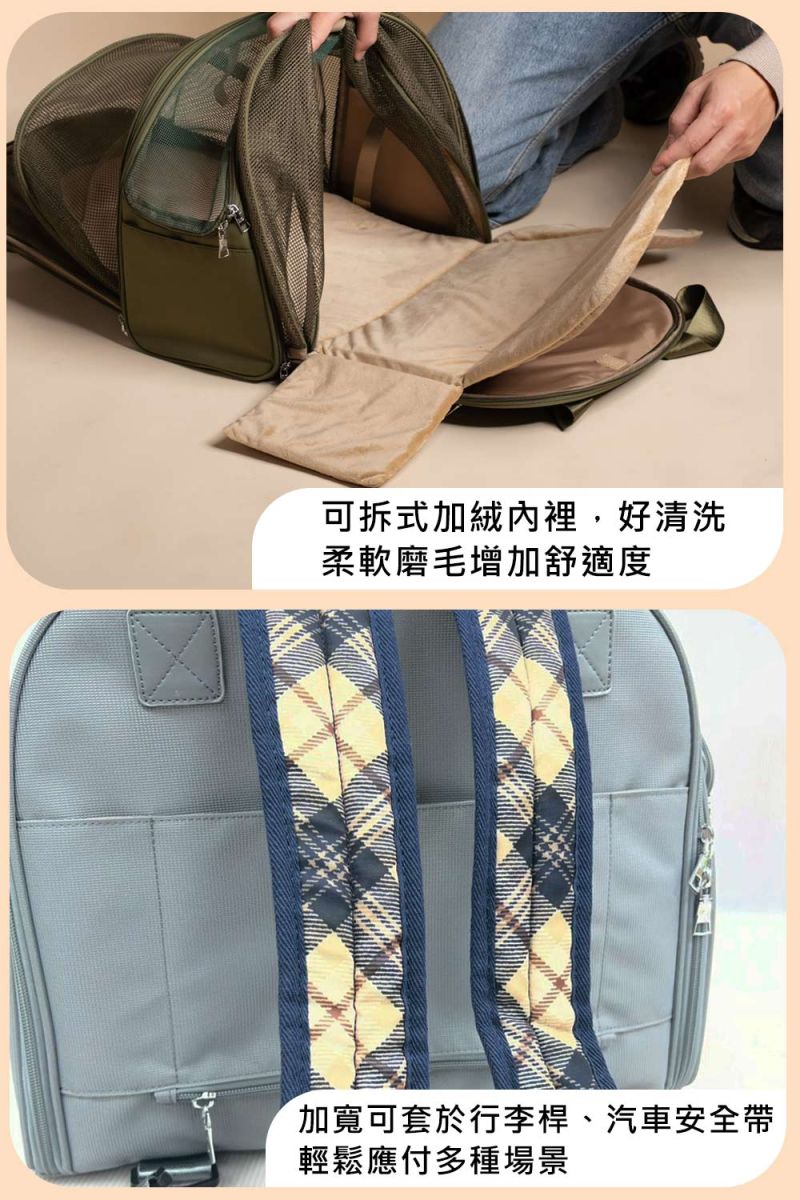 .防潑水面料好清潔 .全景天窗,與毛孩完美互動 .可拓展加大空間,毛孩安心躺 .後背、手提加厚減壓設計,輕鬆沒負擔 .可安裝於行李桿,汽車安全帶 .可折疊平整收納,完美收納不占空間 .可拆卸清洗的內襯軟墊,維持空間乾淨