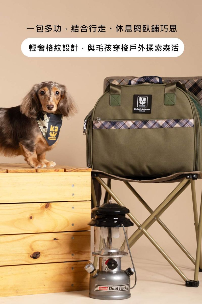 hi到處窩!防潑水透氣野趣經典格調機能可拓展後背手提寵物外出包-森林綠