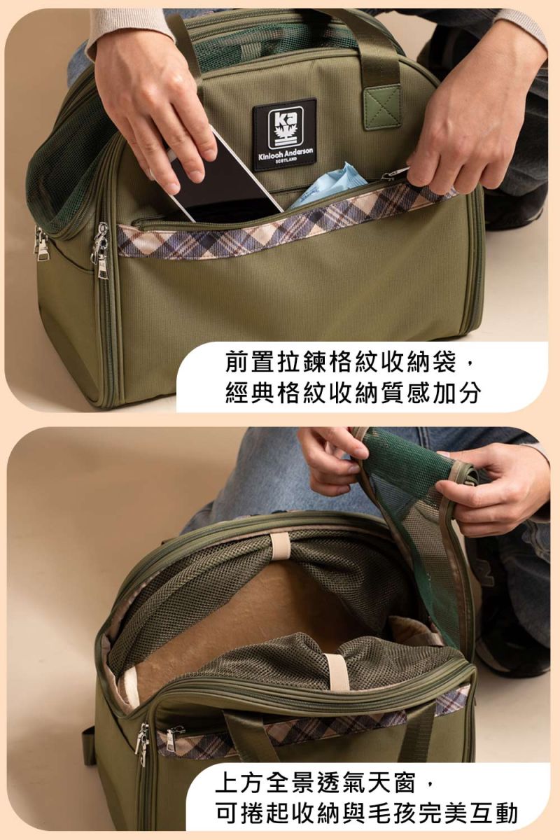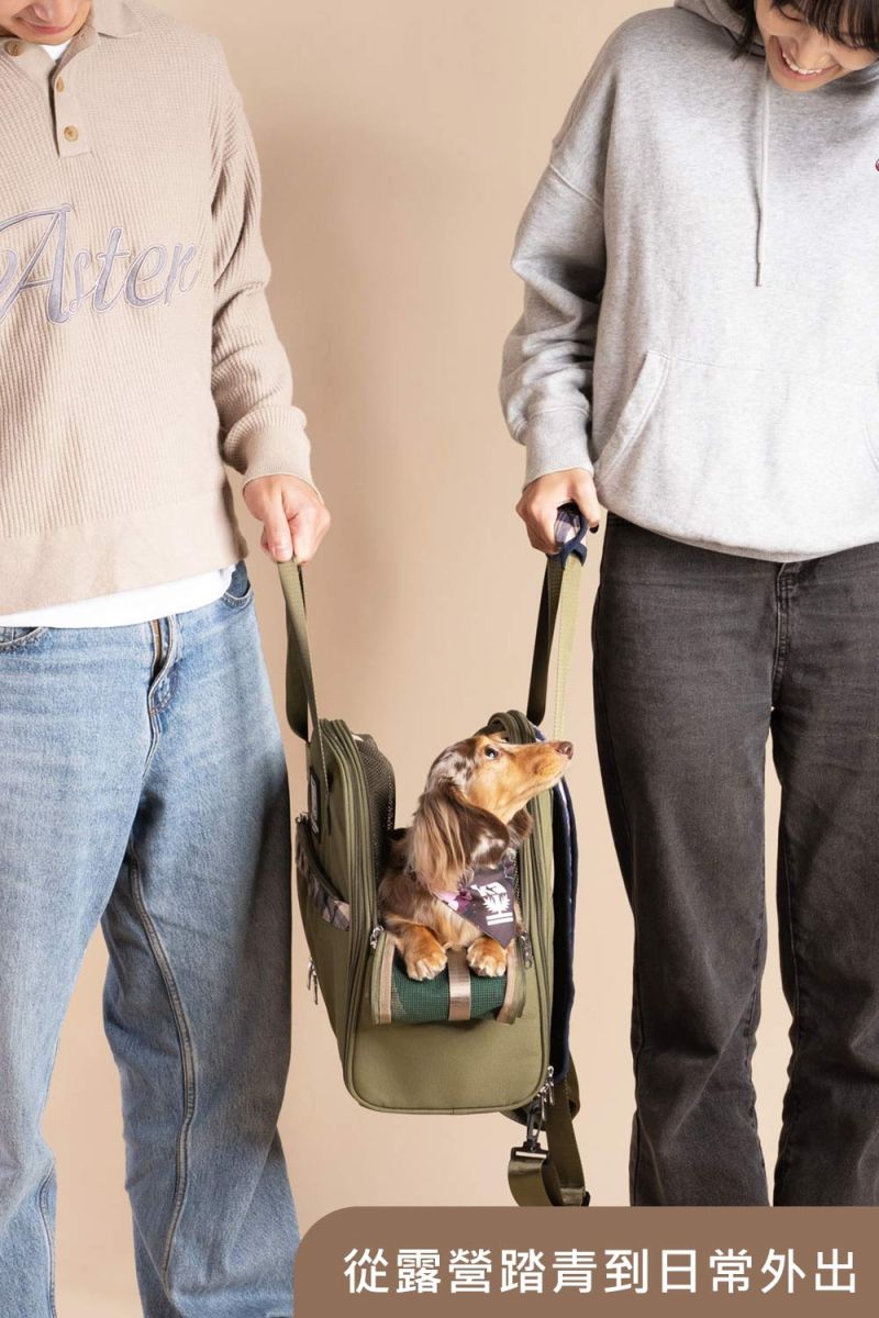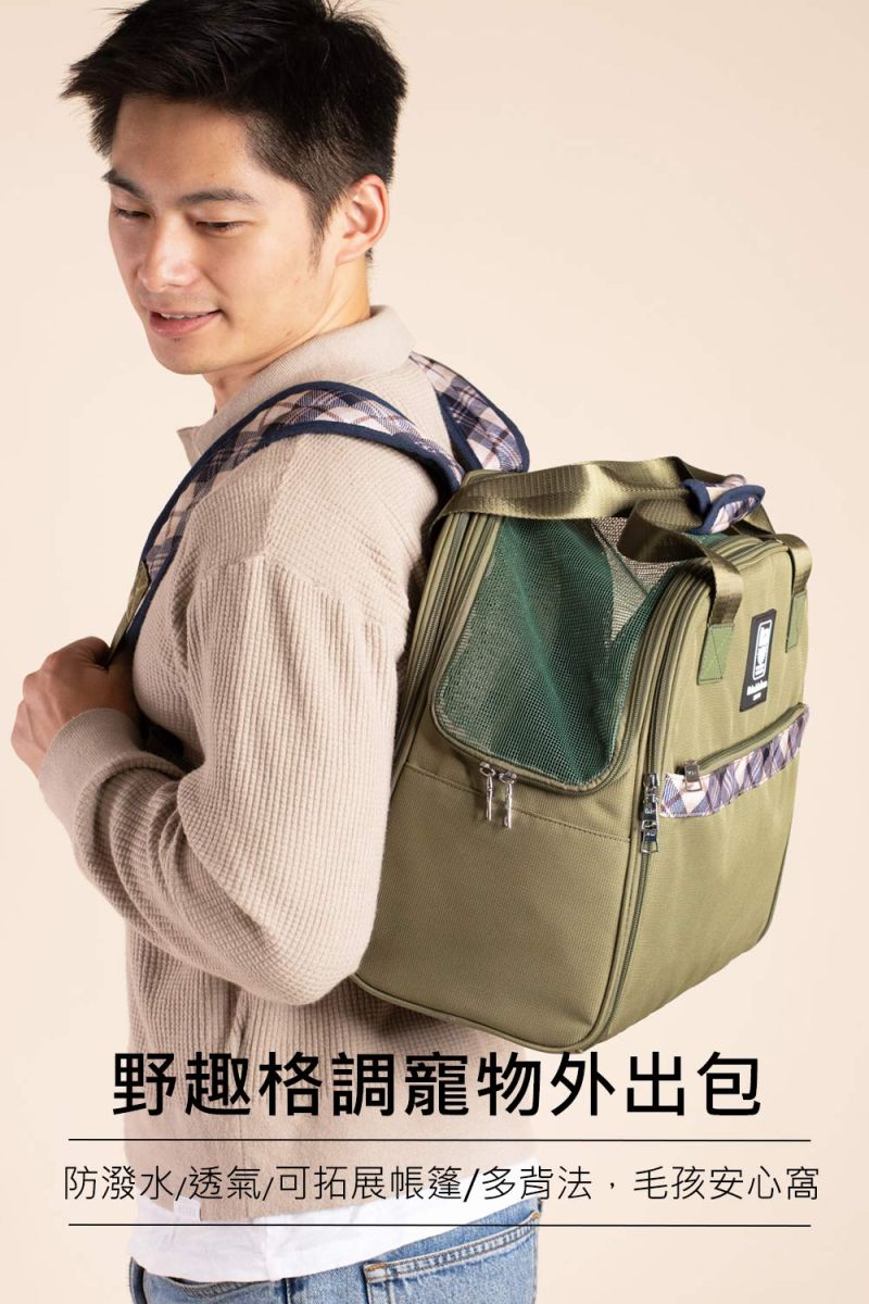 hi到處窩!!防潑水透氣野趣經典格調機能可拓展後背手提寵物外出包-經典卡其