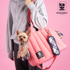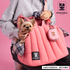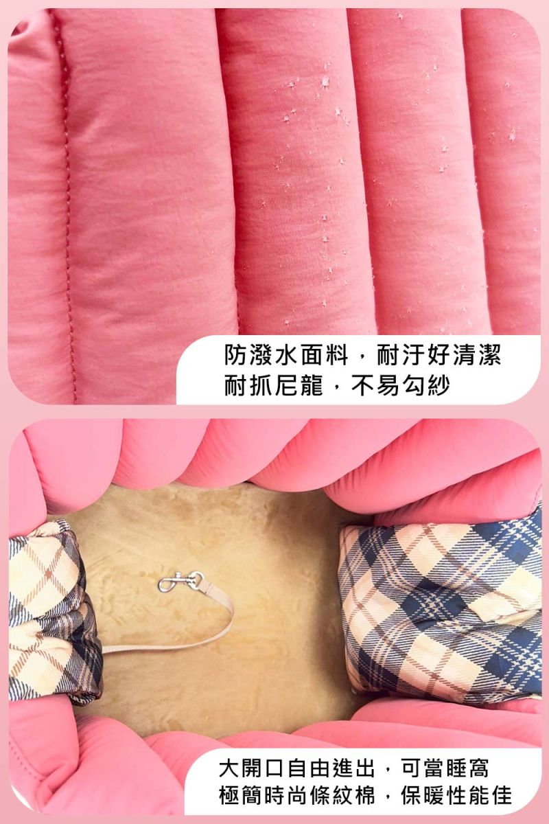 fun舞顏溜色!韓系軟呼呼防潑水透氣格紋小枕寵物側背外出包-粉色