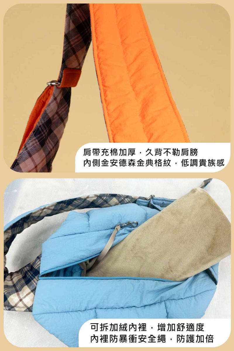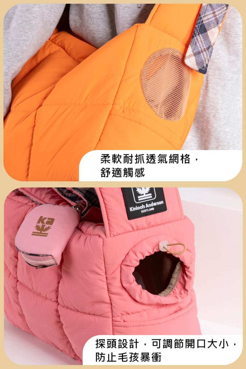fun舞顏溜色!雲朵系防潑水超輕量透氣低調格紋側背寵物外出包-粉色