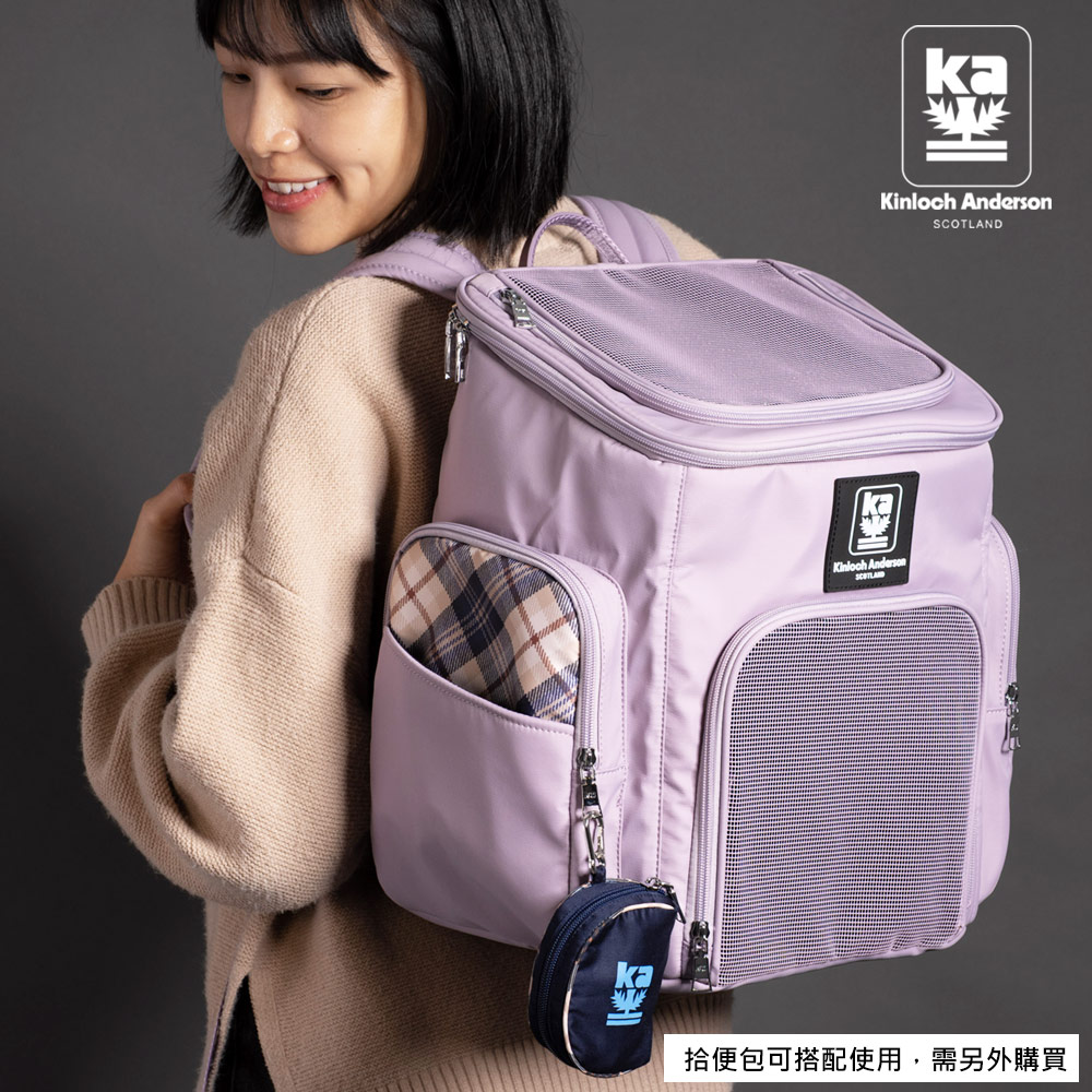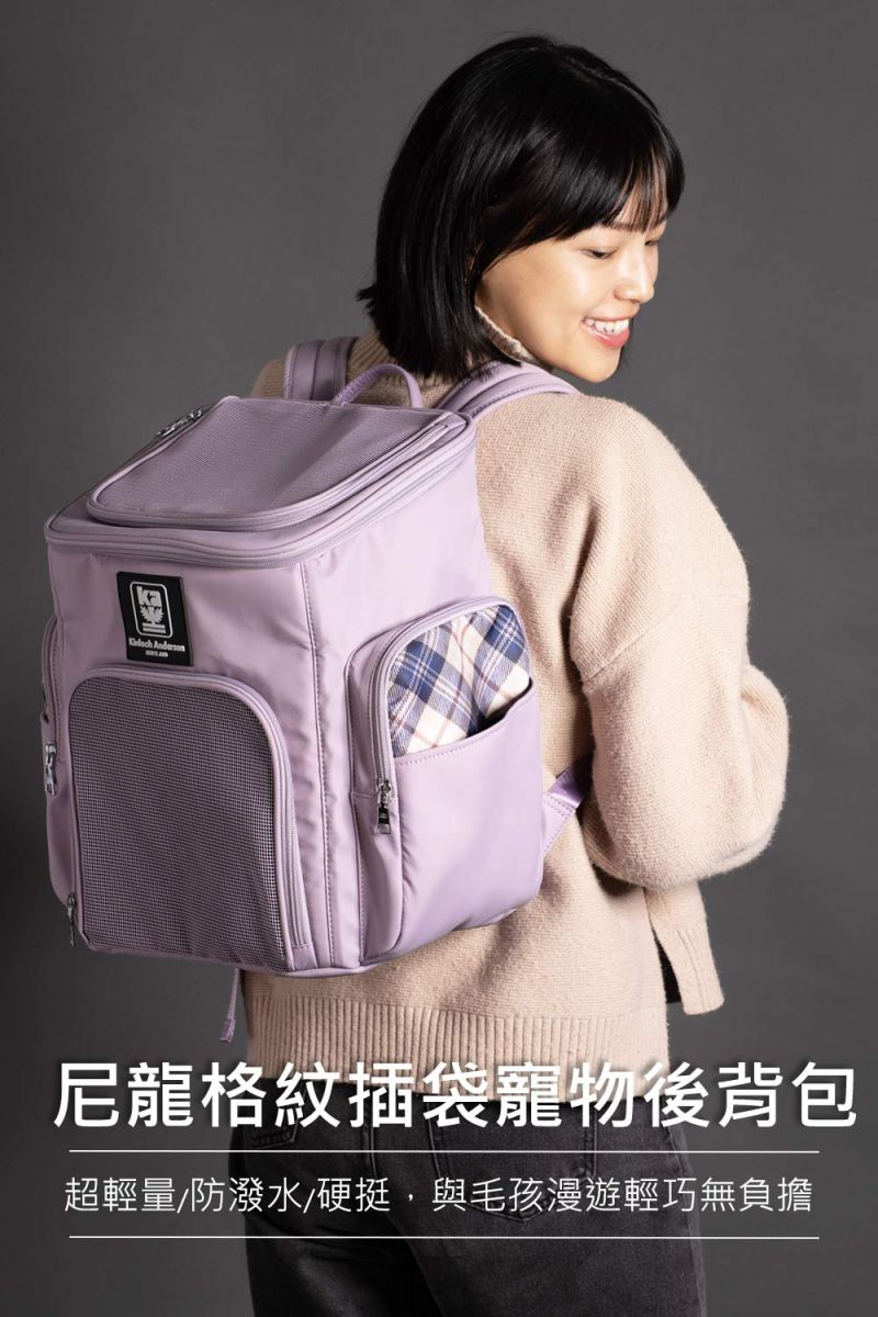 city漫遊!簡約都會輕量防潑水尼龍插袋格紋寵物後背外出包-丁香紫